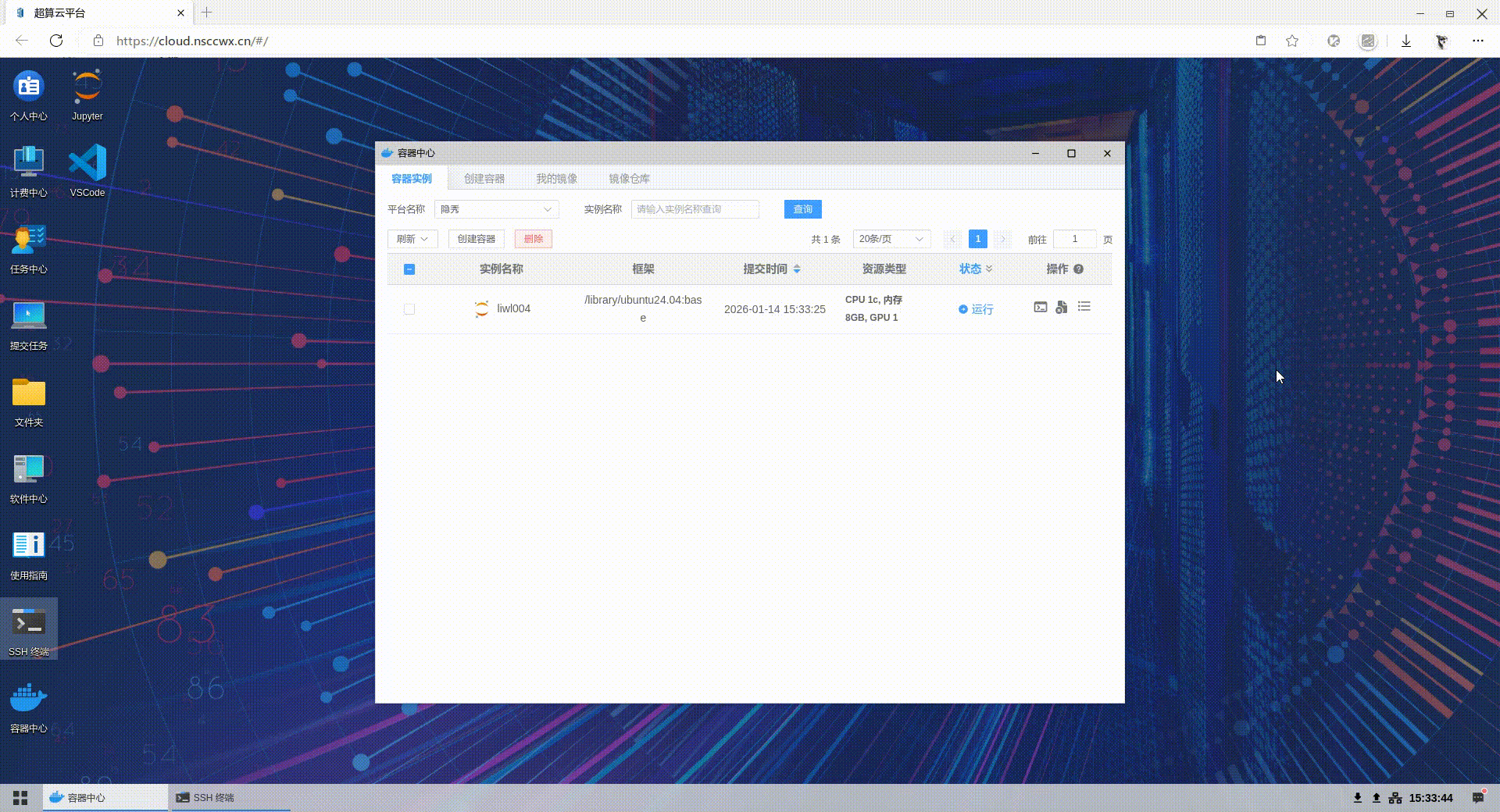 本篇文档主要介绍如何在无锡超算云桌面(https://cloud.nsccwx.cn)提交容器任务以及管理镜像。