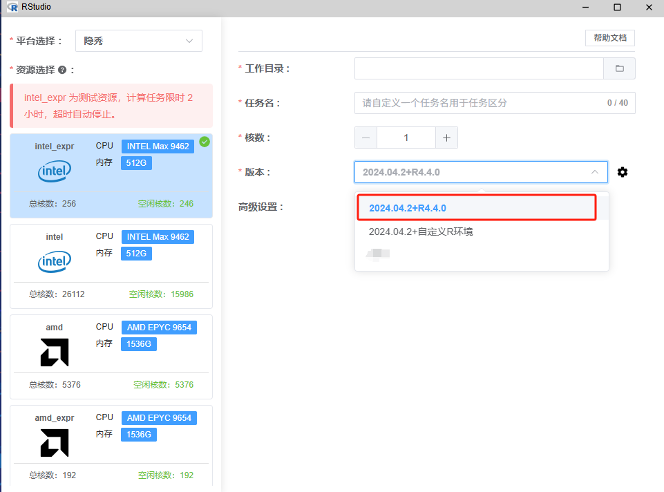 若提交Rstudio作业时,选择的是2024.04.2+自定义R环境